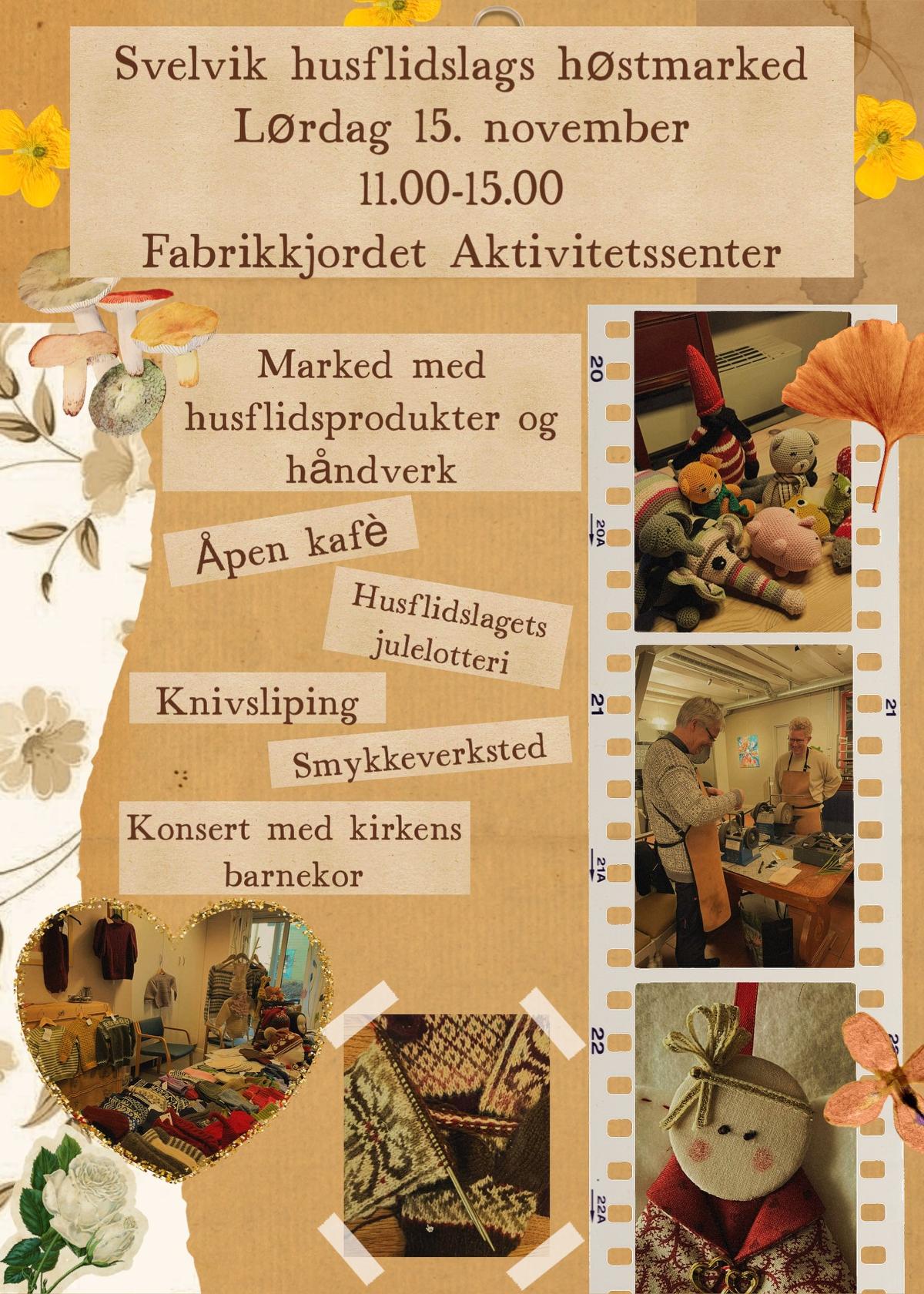 Vi gjentar suksessen fra i fjor og inviterer til marked med husflidsprodukter og lokalt håndverk på Fabrikkjordet/Frivilligsentralen lørdag 15. november kl. 11.00.